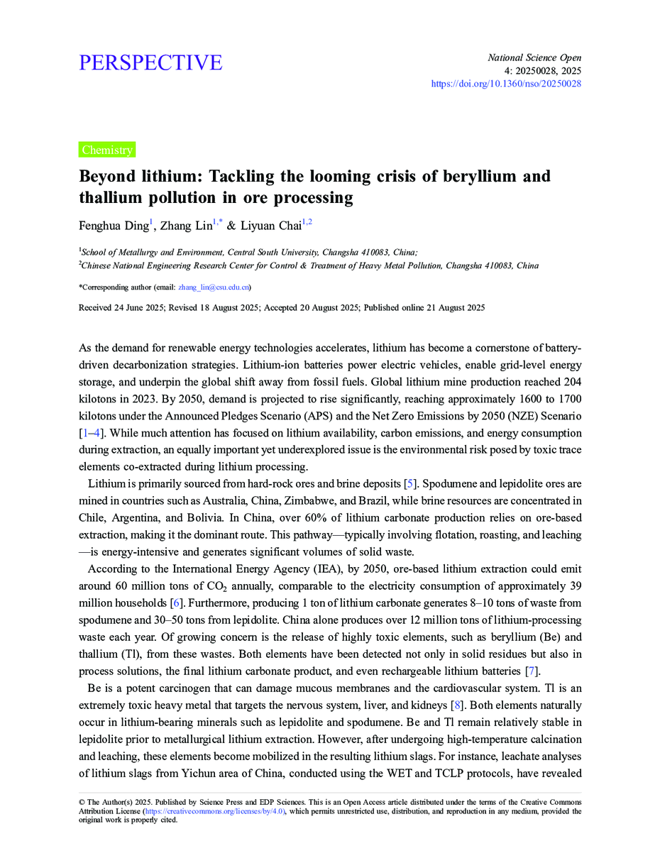 Beyond lithium: Tackling the looming crisis of beryllium and thallium pollution in ore processing