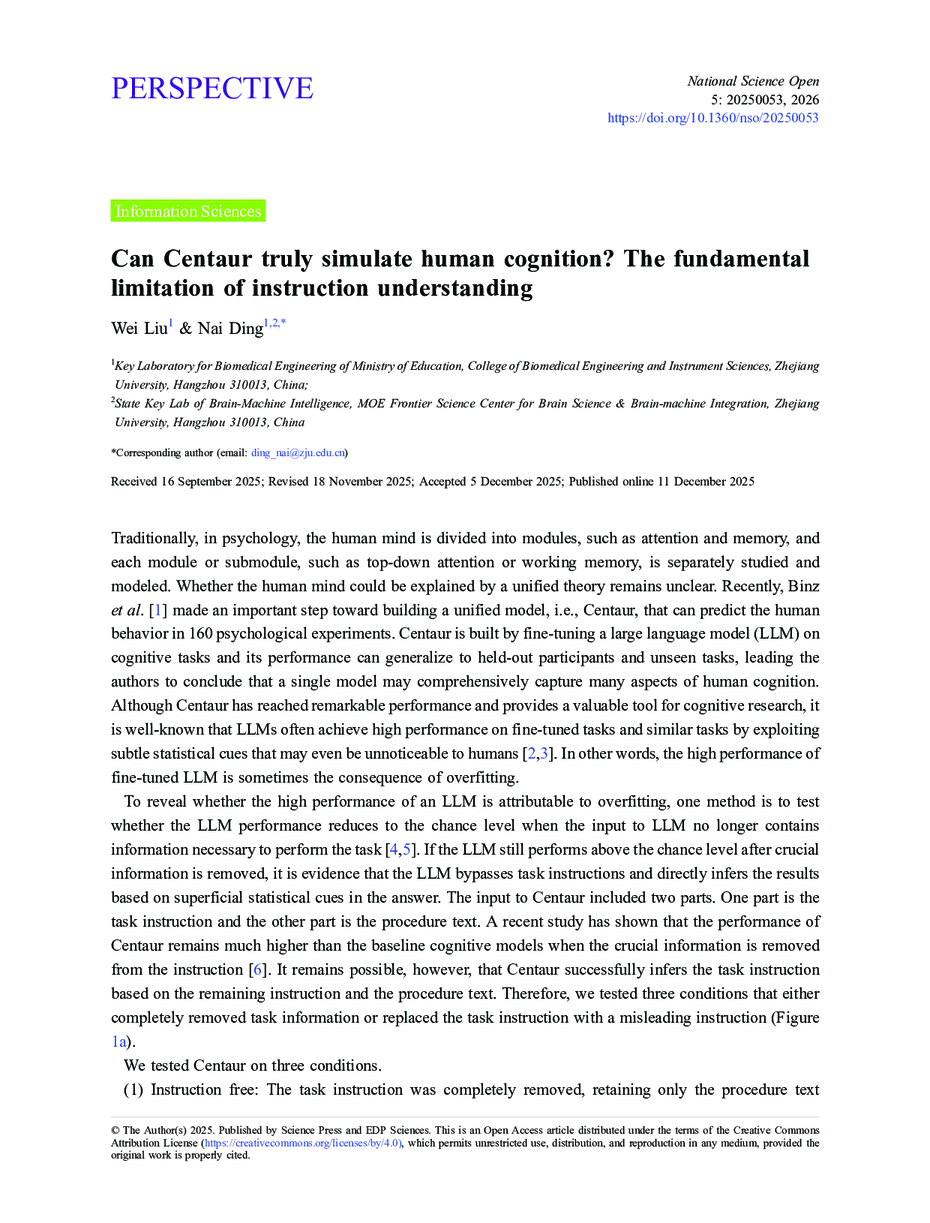 Can Centaur truly simulate human cognition? The fundamental limitation of instruction understanding