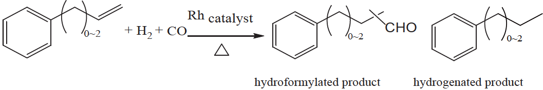 | Catalyst | n-Aldehyde (%) | iso-Aldehyde (%) | Saturated products (%) | Conversion (%) | n-/iso- |