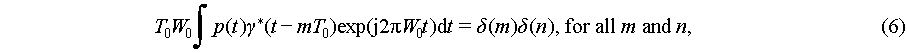 The relationship (6) corresponds to the biorthogonality of the analysis and synthesis windows γ(t) and p(t) that may not be the same and determine the forward and backward/inverse transforms, respectively. The design of these two window functions (or pulses) γ(t) and p(t) plays an important role not only in signal analysis but also in communications when signal s(t) is transmitted at transmitter and Sn,k needs to be detected at receiver.