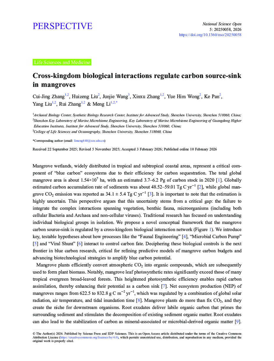 Cross-kingdom biological interactions regulate carbon source-sink in mangroves